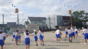 2年生の大縄跳びの練習風景を見ると、失敗したときでも「飛ぶリズム良かったよ!」「膝まで足を上げて跳ぼう!」など、お互いに励まし合う声であふれていました。