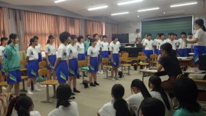 1年生の合唱を聴くと、練習開始のときは自信がなさそうでおぼろげだった歌声が、自信あふれる堂々とした歌声に成長していました。