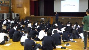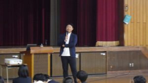 10月24日(金)6限目に2年生でマナー講座を行いました。タカイエンタープライズの髙井元太郎さんを講師にお招きしてお話を聞きました。