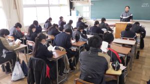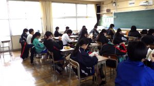 藤浪中学校では1日の始まりに「読書タイム」を設けています。生徒たちは持参した文庫や図書室で借りた本など、各自で用意した本を読みます。教室内では全員が静かに集中して読書に取り組んでおり、本の世界と向き合っていました。情報技術が発達し、活字に触れる機会が減ってきている中でも、書物に触れるという機会は大事であると思います。