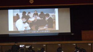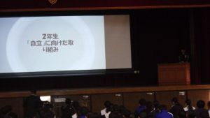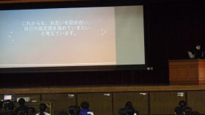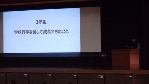 次に、生徒が考えた人権に関する標語の発表や各学年での取り組みを発表しました。