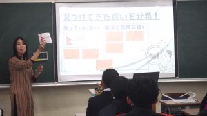 今日は夏休みの期間に海外研修に行った養護教諭による1年生への授業をお届けします。