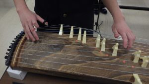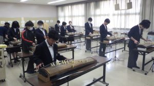 「文」は、1年生の音楽で「箏」の演奏体験に取り組みました。