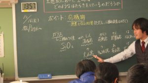 物価の上下との関連について、学んでいました。今日の授業で学んだ生徒たちが