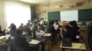 生徒たちは、英単語と日本語を見比べて、楽しみながら英単語の学習に取り組んでいました。