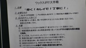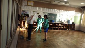 今日は、業後の教室のワックスがけの様子をお届けします。