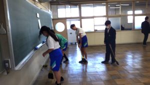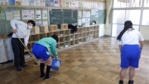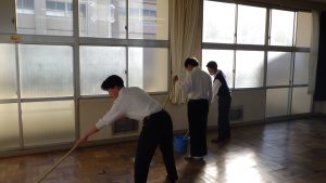 各クラスで有志の生徒が教室のワックスがけに取り組みました。