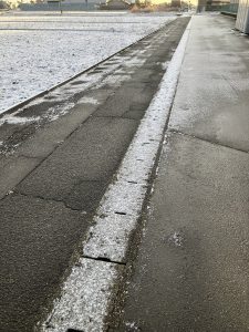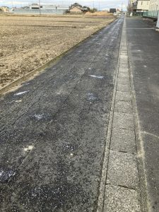 よく見ると融雪剤がまいてありました。そのおかげで雪が積もらなかったのです。