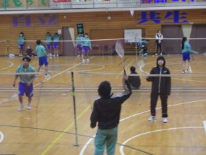 生徒たちは目いっぱい体を動かしてシャトルを追いかけ、