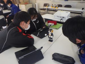 生徒たちは、ロボホンをしゃべらせたり、動きをつけたりするなど楽しそうに取り組みました。