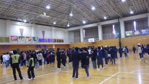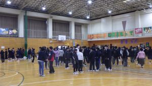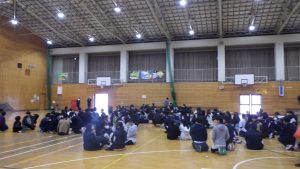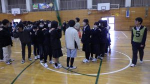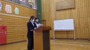中学校紹介のビデオを流した後、学級役員を中心に交流活動として