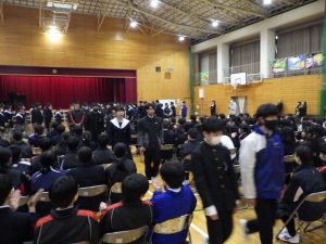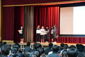 生徒会企画では、桃太郎の寸劇や、転勤された先生方からの