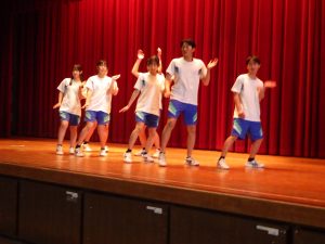 体育館では2年生の体育で「ダンス」の発表会を行っていました。