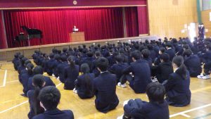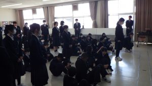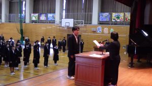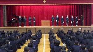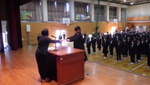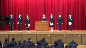 修了式では、修了証の授与、校長先生のお話や来年度前期生徒会役員の認証式