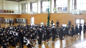 保護者の方々の温かな見守りの中、生徒たちは