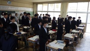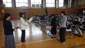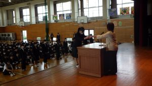 朝礼では前期学級委員の認証を行いました。