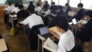 「問いを立てて追及しよう」をめあてとして、生徒たちは本文を