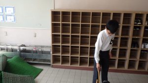 今年度からは給食後に毎日清掃を行っています。